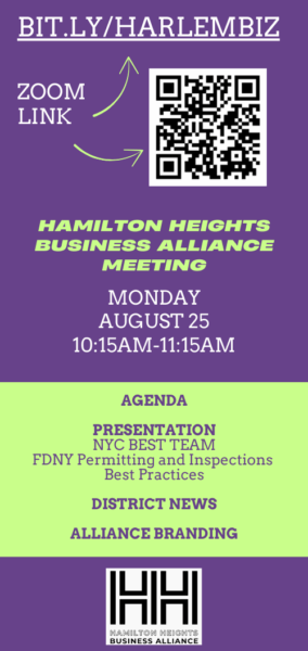 Please join with community business owners and supporters for the Hamilton Heights Business Alliance’s monthly meeting.