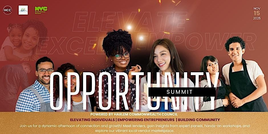 Join HCC’s Opportunity Summit, where NYC comes together to elevate, empower, and build through learning, connection, and community. Join Harlem Commonwealth Council (HCC) for our inaugural Opportunity Summit —